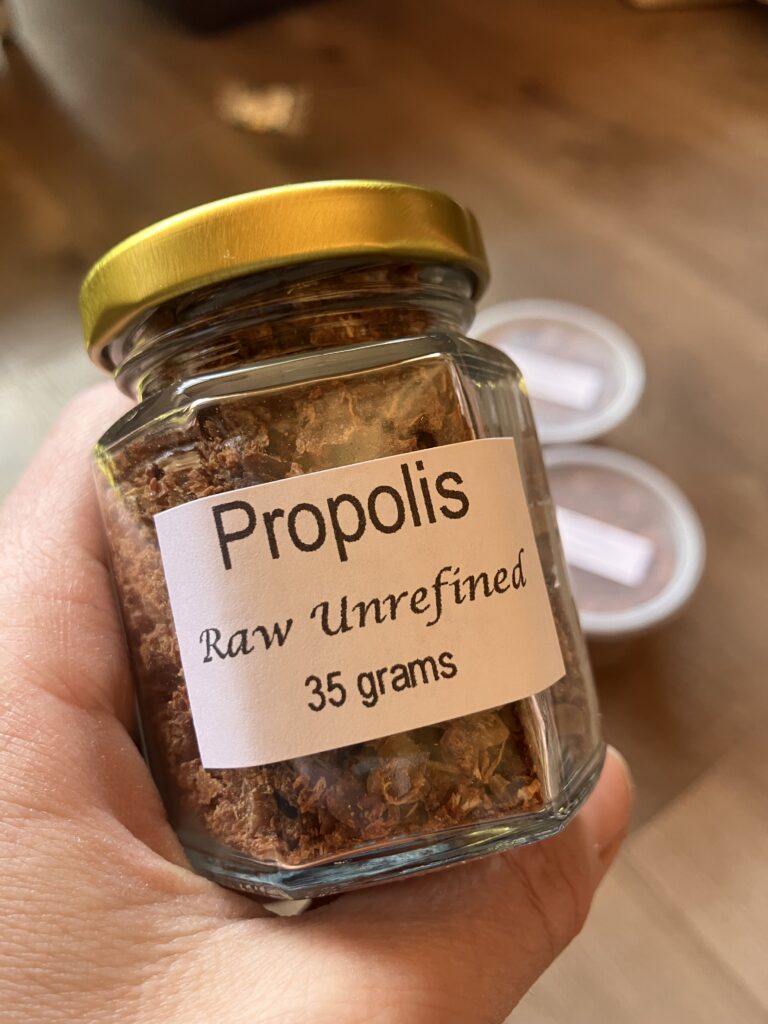 Raw unrefined propolis for that desire to do it yourself! This is in its crude state, ready for tincturing. Alcohol draws the properties out more effectively, but glycerin can also be used.